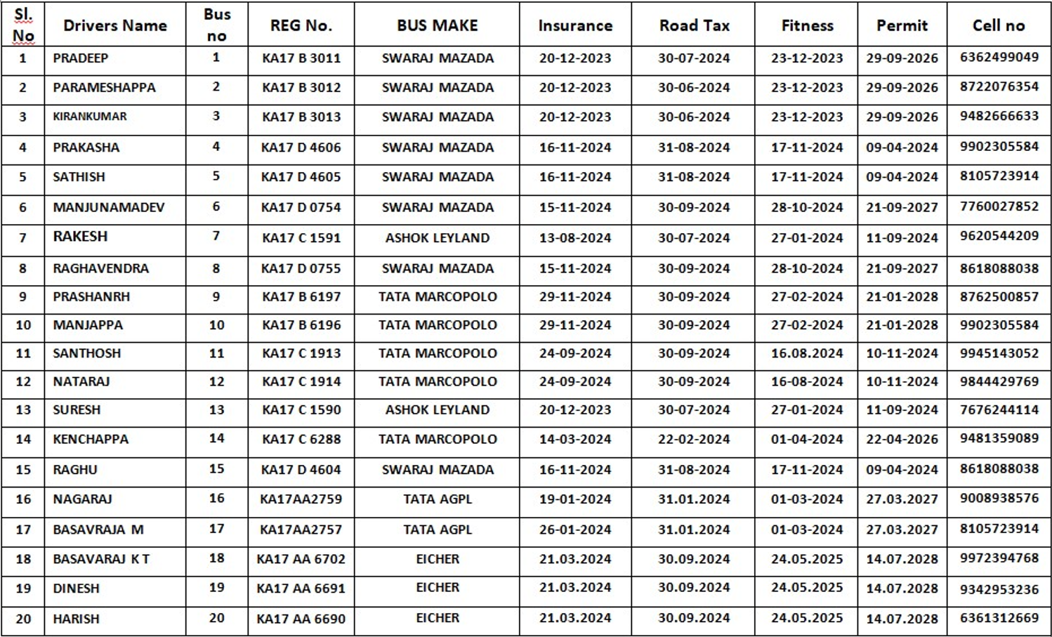 We have operating 20 buses during the academic year 2023-24. Which covers 16 routes of the city Davanagere and Harihar. About 3000 Students have been using the benifits. 16 buses with 50 seating capacity each for students and 4 buses with 45 seating capacity each are provided from across the city. (7 Tata Macro polo, 2 Ashok Leyland and 8 Swaraj Mazad, 3 Eicher).
